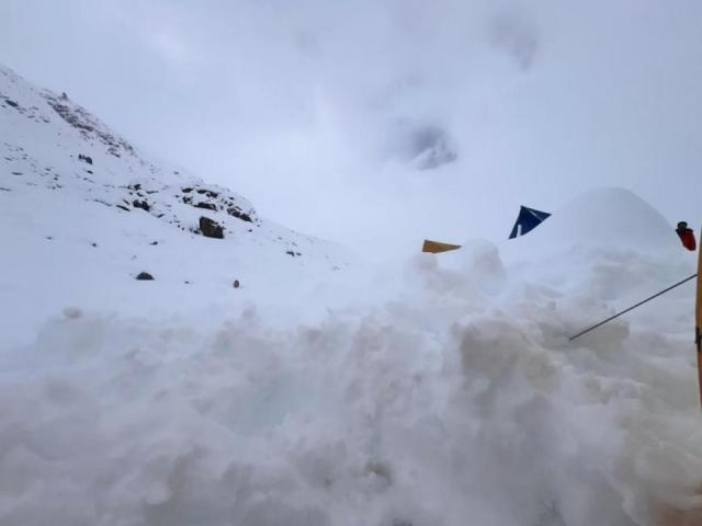 这是董书畅第一次走珠峰东坡路线。"之前周边的徒步路线我都走过,北坡路线走到了海拔 6500 米的点位。""东坡路线从海拔 3000 多米就开始,一直到海拔 5000 多米,跨度大,再加上东坡的气候特点,自然景观壮丽。"行进 1000 米,董书畅攀爬到东坡路线的第一个营地晓乌措之际,暴雪来了,"没想到会那么大,远超预期,非常恐怖"。