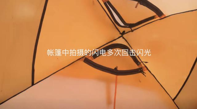 帐篷被闪电照亮。网络截图。