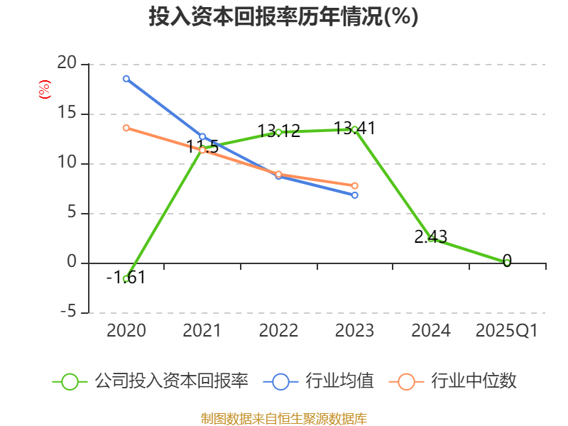 盈利能力方面, 2025年一季度公司加权平均净资产收益率为0.26%,同比下降2.87个百分点。公司2025年第一季度投入资本回报率为0%,较上年同期下降2.53个百分点。
