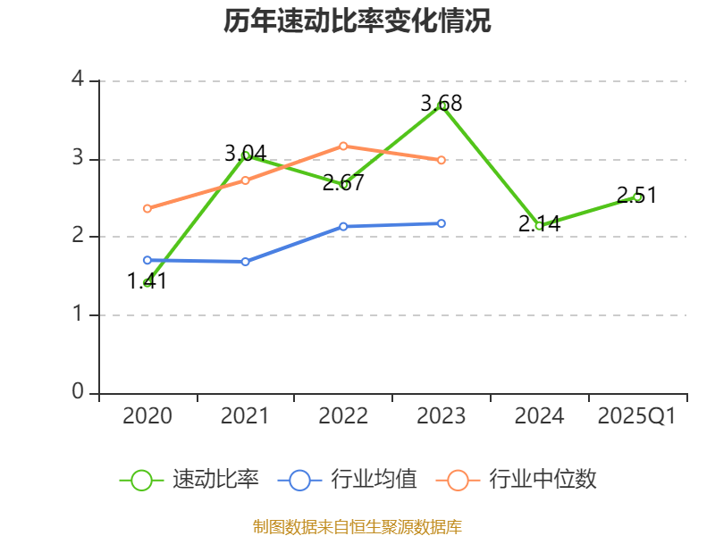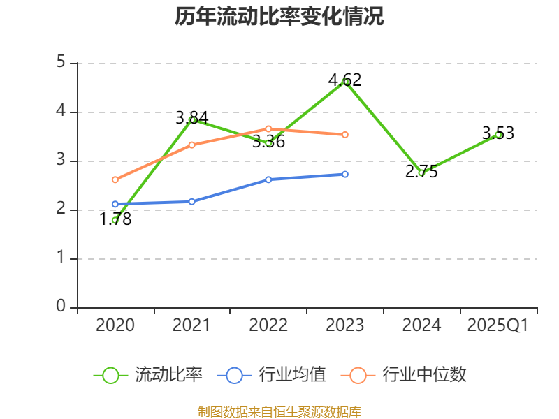 2025年第一季度,公司流动比率为3.53,速动比率为2.51。