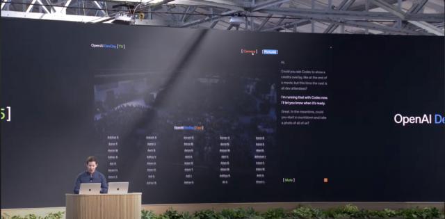 但这些升级,远不如现场最后的那段演示来得震撼。演示者 Raman 的目标是仅通过对话,让现场的语音助手调用 Codex SDK,命令它做一个滚动的开发者名单。Codex 在后台实时修改了前端应用的 React 代码,屏幕上立刻开始滚动开发者的姓名。