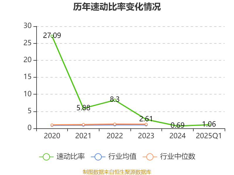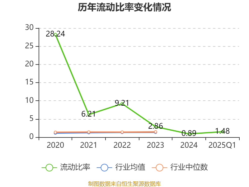 2025年第一季度,公司流动比率为1.48,速动比率为1.06。