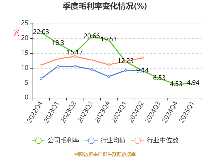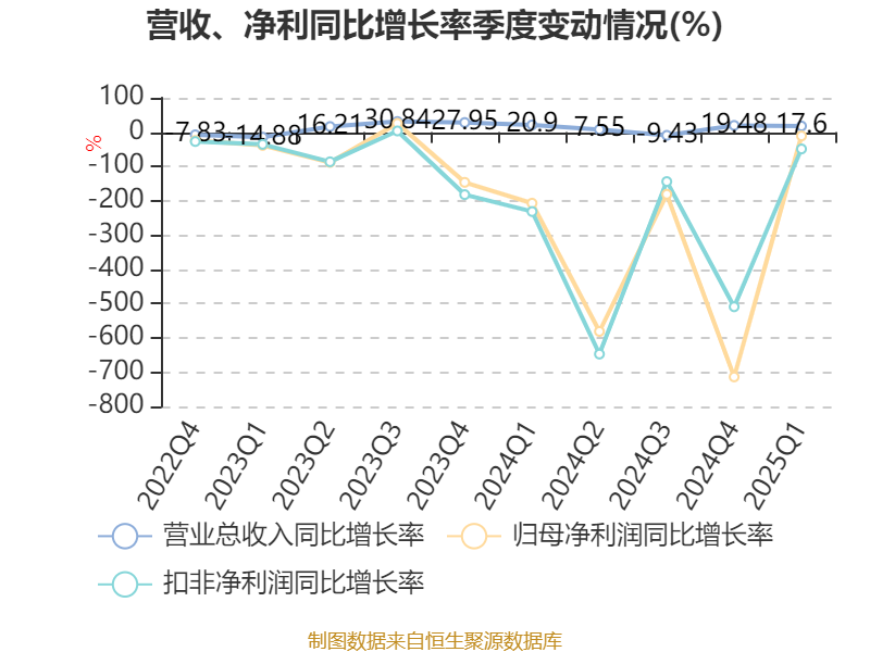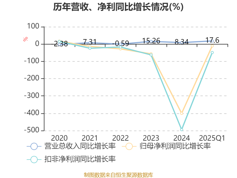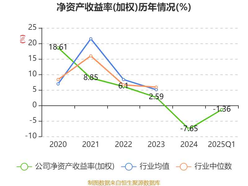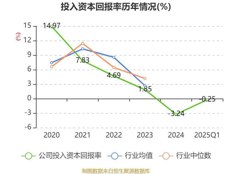 盈利能力方面, 2025年一季度公司加权平均净资产收益率为-1.36%,同比下降0.16个百分点。公司2025年第一季度投入资本回报率为-0.25%,较上年同期上升0.17个百分点。