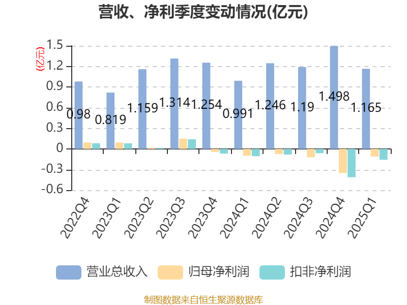 中证智能财讯蒙泰高新(300876)4月26日披露2025年第一季度报告。公司实现营业总收入1.16亿元,同比增长17.60%;归母净利润亏损1107.82万元,上年同期亏损996.5万元;扣非净利润亏损1581.53万元,上年同期亏损1060.6万元;经营活动产生的现金流量净额为-2008.52万元,上年同期为-1577.34万元;报告期内,蒙泰高新基本每股收益为-0.1154元,加权平均净资产收益率为-1.36%。