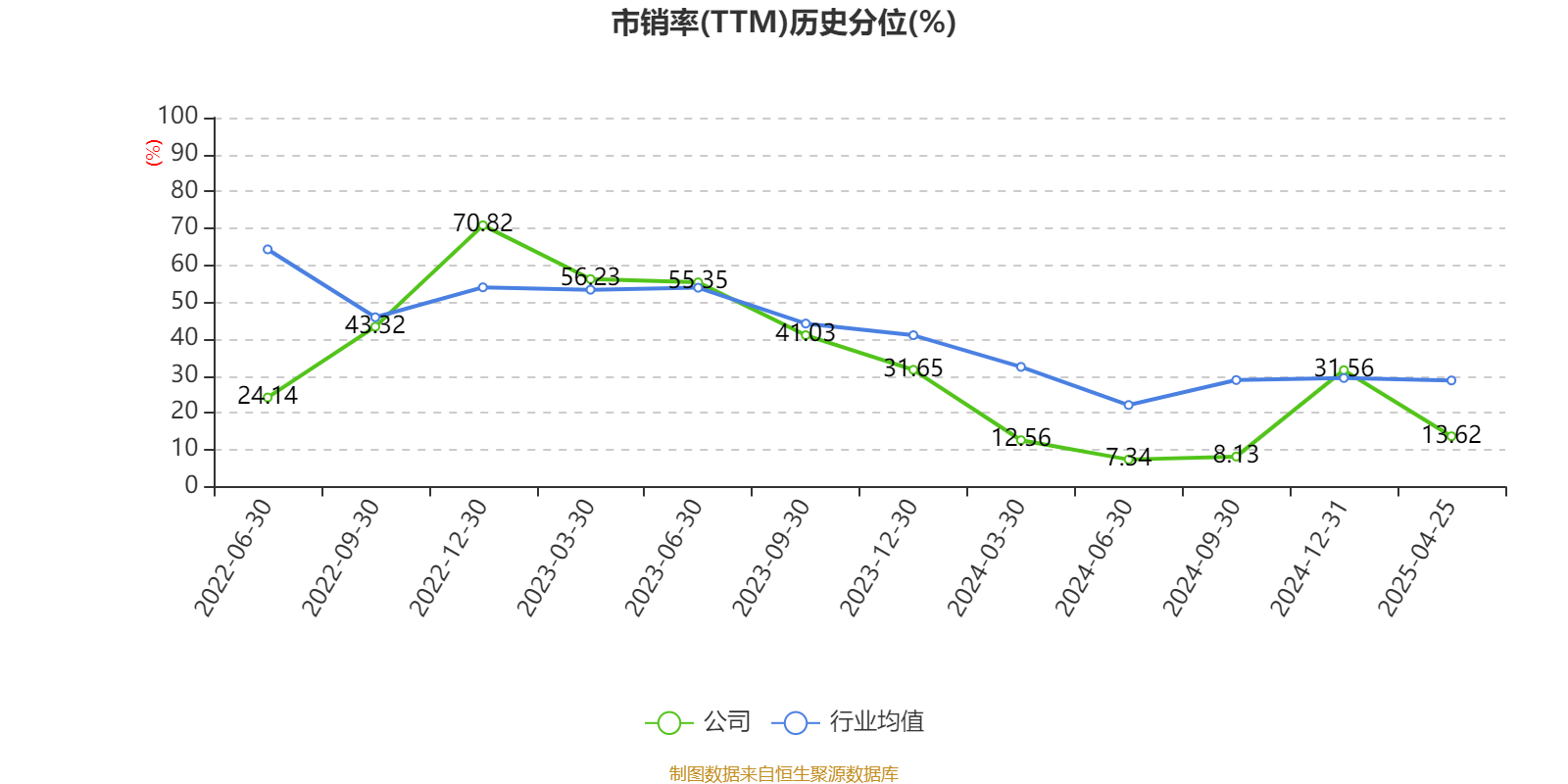 以4月25日收盘价计算,蒙泰高新目前市盈率(TTM)约为-32.17倍,市净率(LF)约2.68倍,市销率(TTM)约4.14倍。