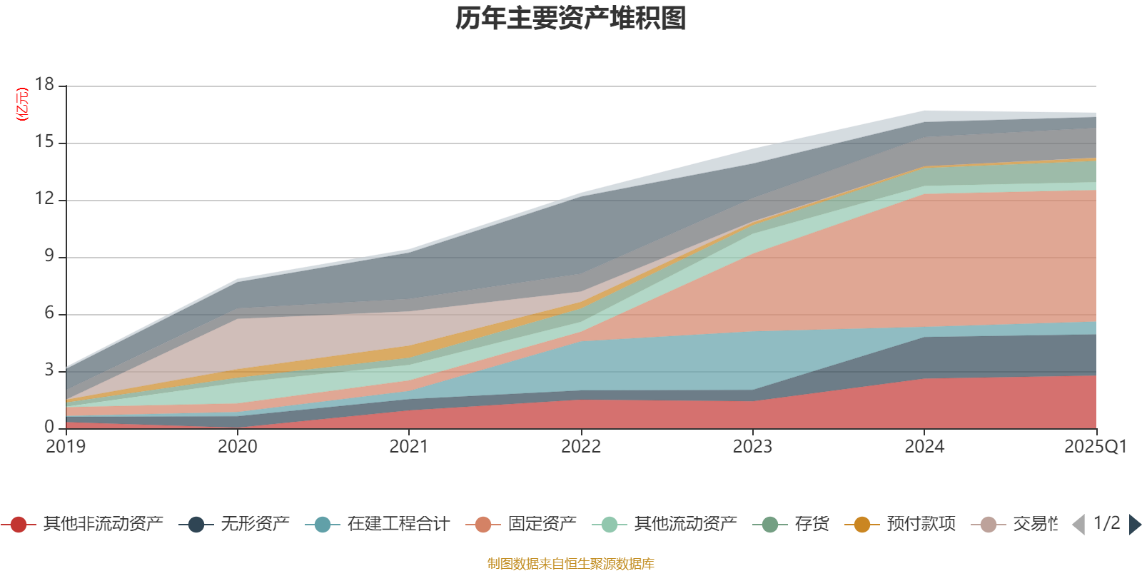 资产重大变化方面,截至2025年一季度末,公司划分为持有待售的资产较上年末减少100%,占公司总资产比重下降2.25个百分点;货币资金较上年末减少28.26%,占公司总资产比重下降1.32个百分点;其他非流动资产较上年末增加6.16%,占公司总资产比重上升1.08个百分点;存货较上年末增加17.96%,占公司总资产比重上升1.06个百分点。